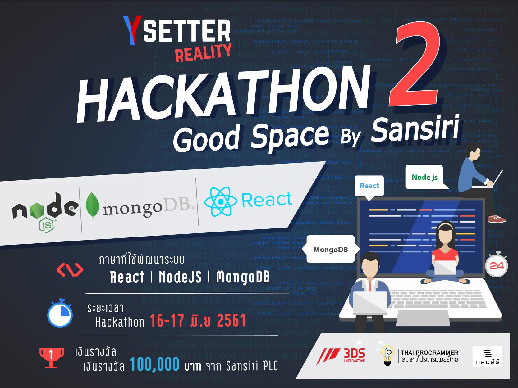 Home2018May16Ysetter Reality Hackathon 2 [Apply bf 12 June] Event Ysetter Reality Hackathon 2 [Apply bf 12 June] " YSetter Reality Hackathon 2 " ขอเชิญ นักเรียน นิสิตนักศึกษา ร่วมเข้าแข่งขันพัฒนาแอพพลิเคชั่น เชิงสร้างสรรค์ ด้วยโจทย์ " Good Space By Sansiri " พร้อมชิงเงินรางวัลมูลค่ากว่า 100,000 บาท!! จาก Sansiri PLC ด้วยภาษา React, NodeJS, MongoDB ระหว่างวันที่ 16 - 17 มิถุนายน 2561 โดยรวมกลุ่ม 4 คน หรือ แบบเดี่ยว เข้าร่วมคัดเลือกสัมภาษณ์รอบแรก เพื่อเข้าแข่งรอบสุดท้าย ส่งใบสมัครได้วันนี้ถึงวันที่ 12 มิถุนายน 2561 ประกาศผู้ได้เข้าร่วมแข่งขันวันที่ 14 มิถุนายน 2561 อ่านรายละเอียดเพิ่มเติม / สมัคร >> https://www.eventpop.me/e/3390 FB : Ysetter Reality Share this:Click to share on Twitter (Opens in new window)Click to share on Facebook (Opens in new window)Like this:Like Loading... Related Nep Community Builder | Passion ด้านการศึกษา | รักการจัดอีเว้น, พูดคุยกับผู้คน Share This Previous ArticleFALL 2018 YSEALI ACADEMIC FELLOWSHIP [Apply bf 27 May] Next Article10 คุณลักษณะของผู้นำแบบรับใช้ที่ใครๆ ก็อยากร่วมงานด้วย! May 16, 2018